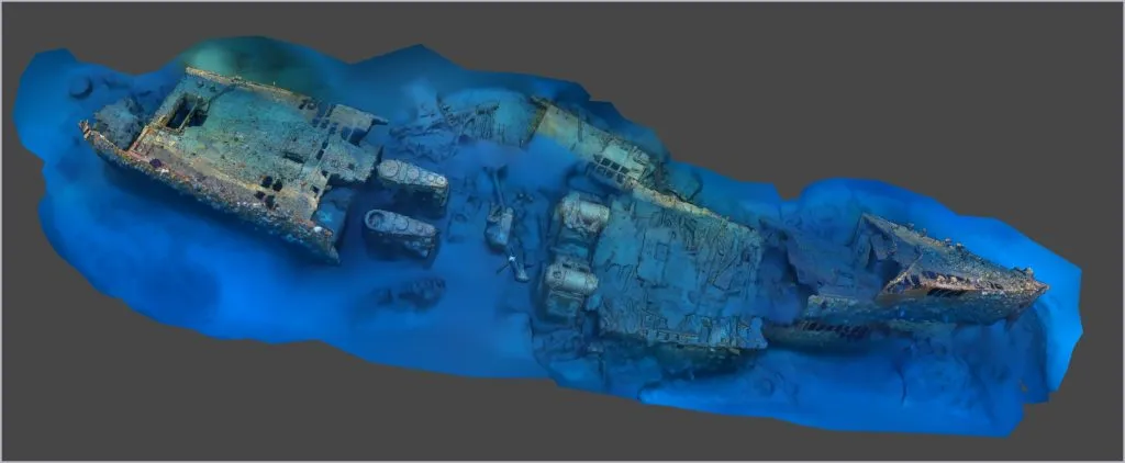 We dived The Junee on 22/12/22 as the first of our project dives. Measured as 82.2m deep on dive computers, we believe this is possibly the deepest Photogrammetry model of a wreck produced in Australian Waters. The image at the top of the page shows Andy with the camera rig followed by Gareth collecting data on The Junee.
