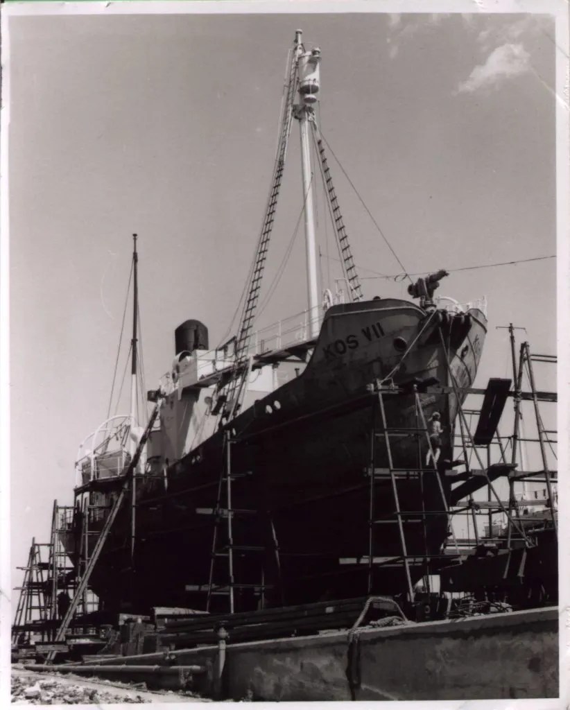 Whale Products Pty Ltd in Tangalooma Queensland purchased the Kos VII in 1952. Before being transferred in 1957 to the Cheynes Beach Whaling Station; where she stayed with the company for 10 years. In 1967 she was sold to a Scrap Metal dealer and in 1968 was scuttled off Rottnest Island
