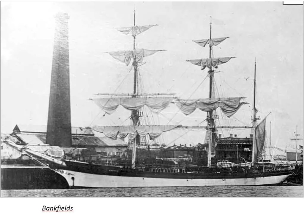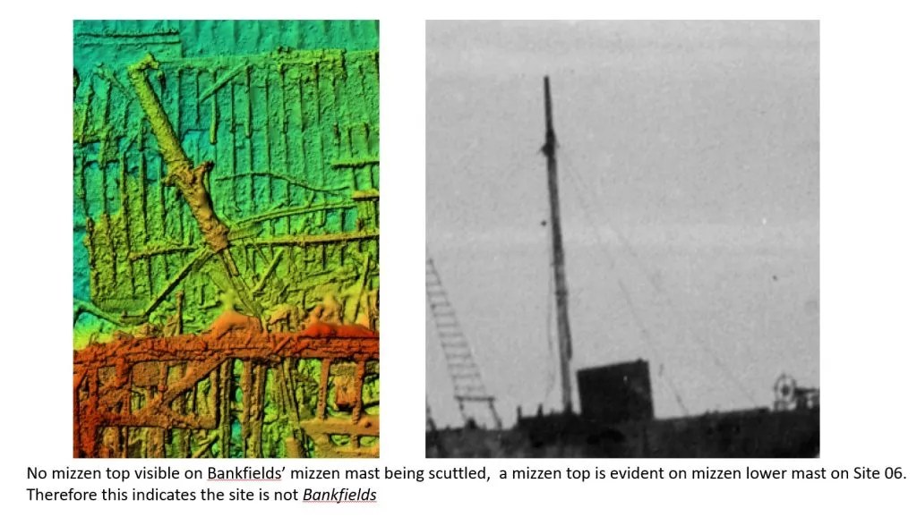 – No mizzen top visible on Bankfields’ mizzen mast being scuttled (See