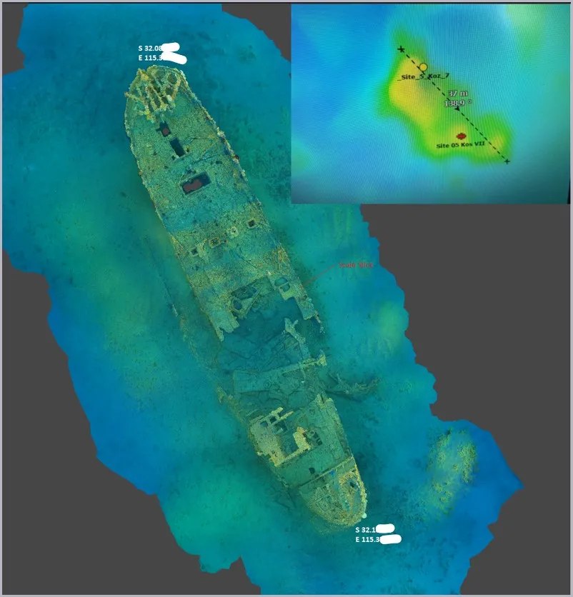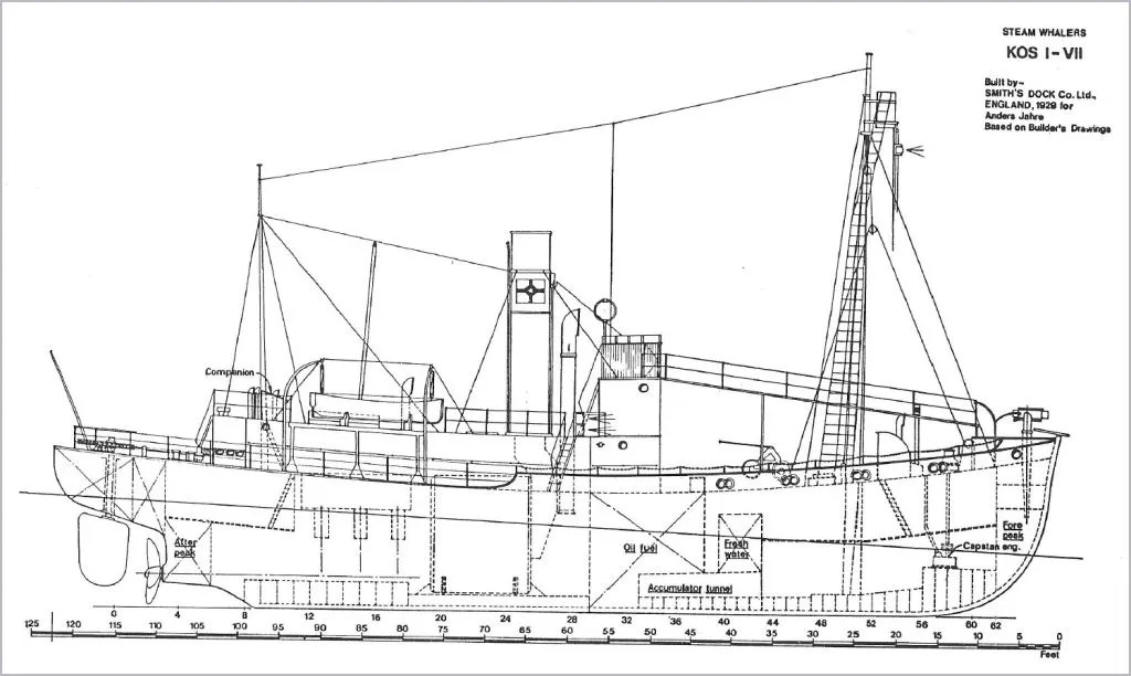 This wreck to our best knowledge is the Kos VII, an ex whale chaser lying in 83m of water. She is a small wreck being 35m long and 7.5m wide.